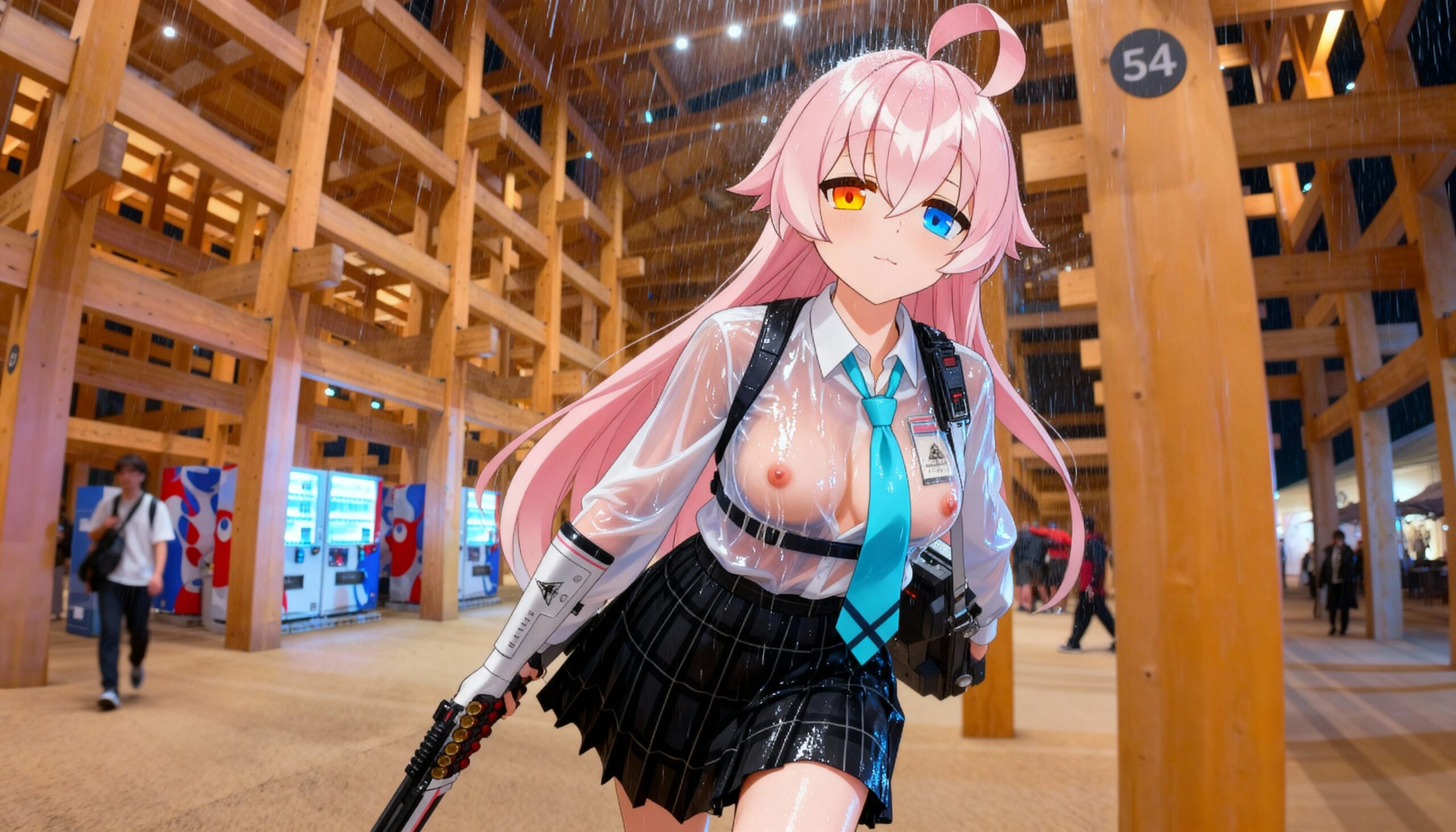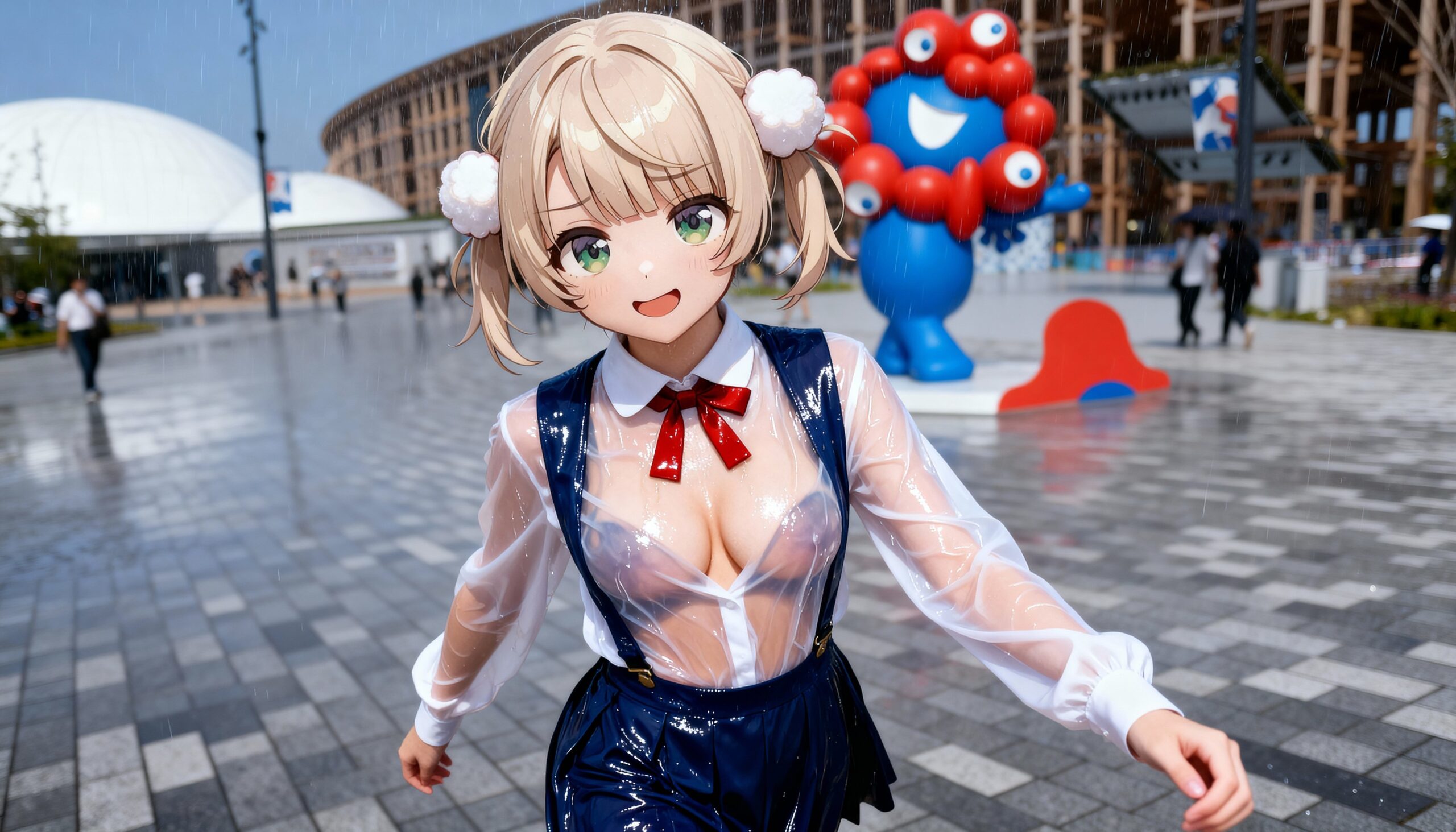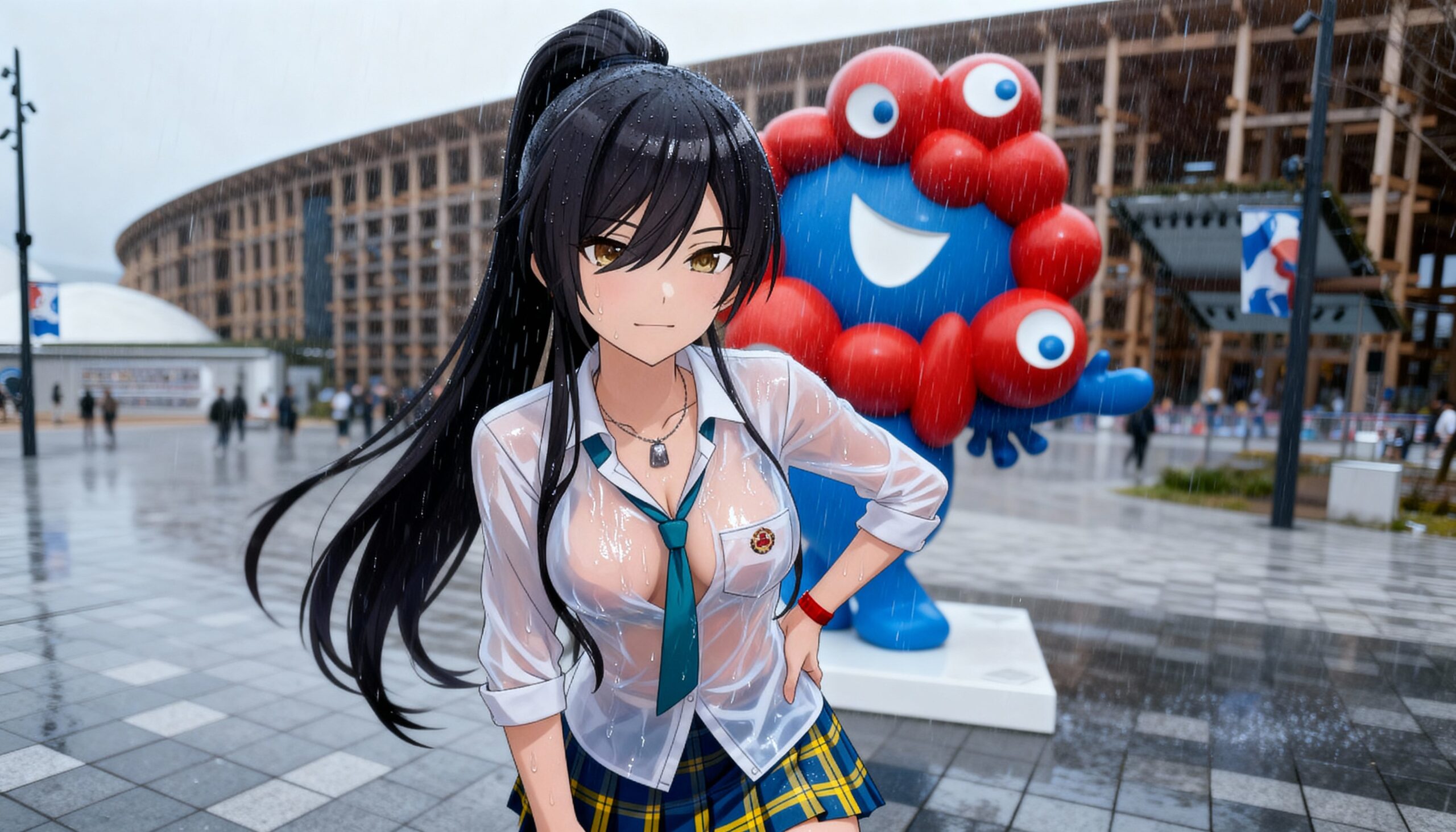 制服万博で大雨「おっぱい透けまくり」!