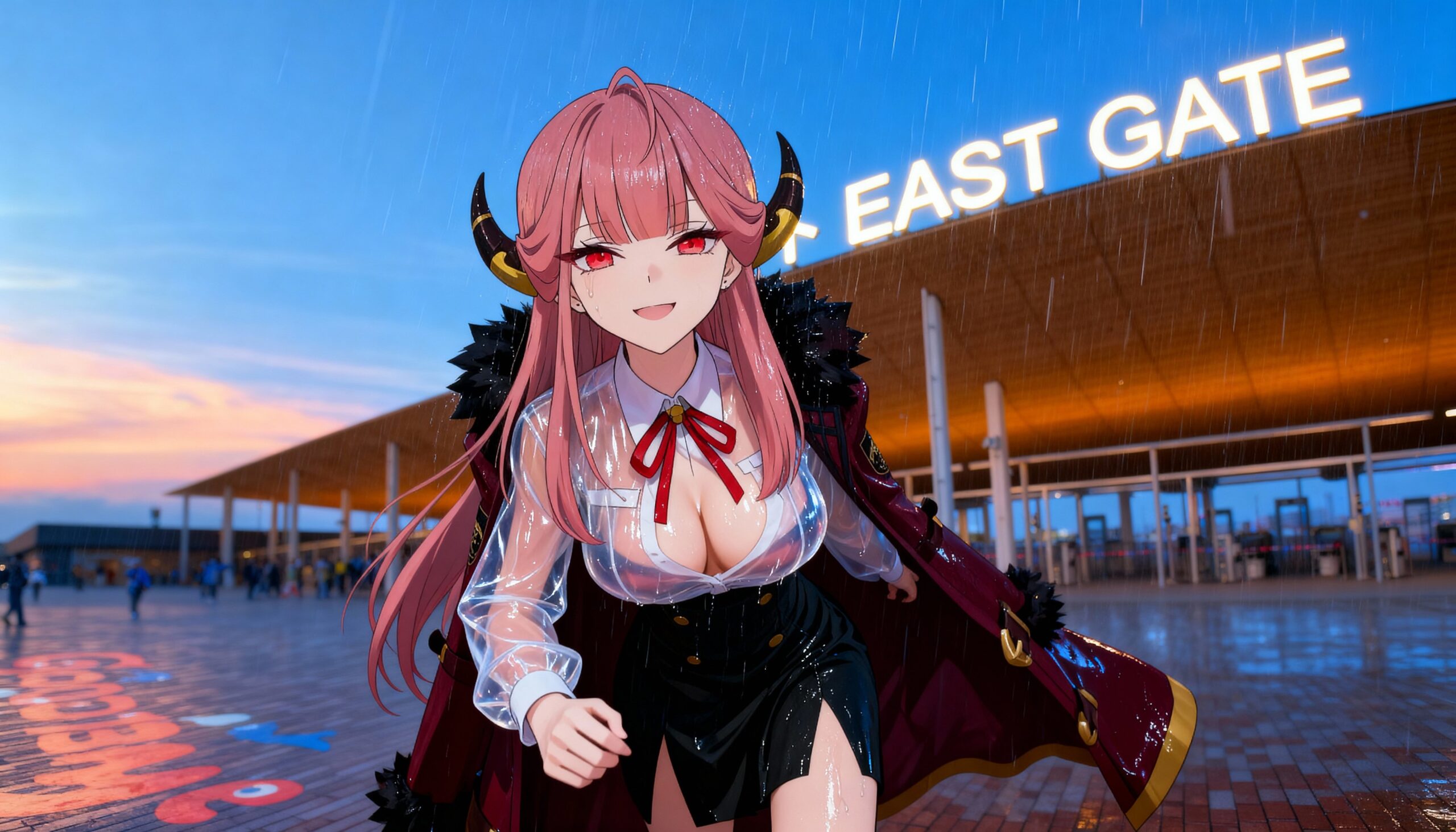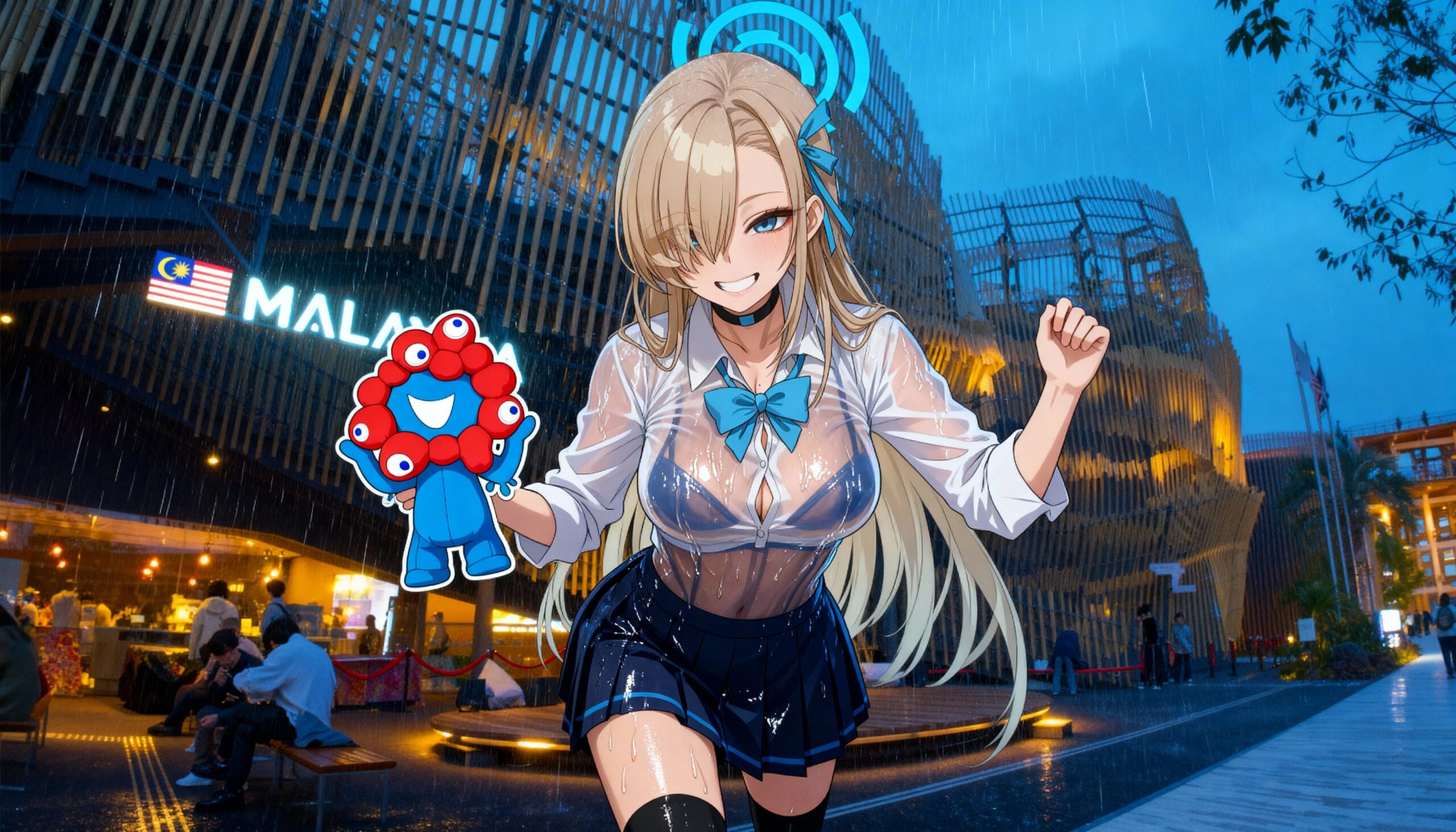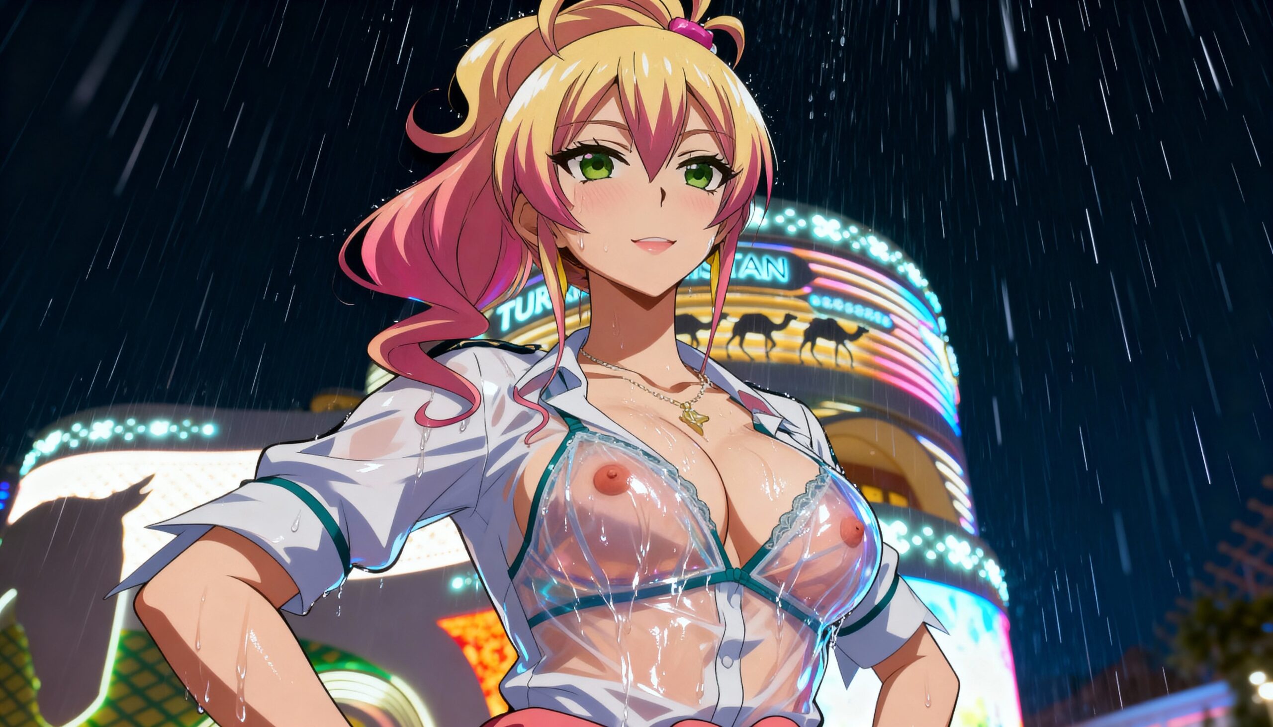 制服万博で大雨「おっぱい透けまくり」!